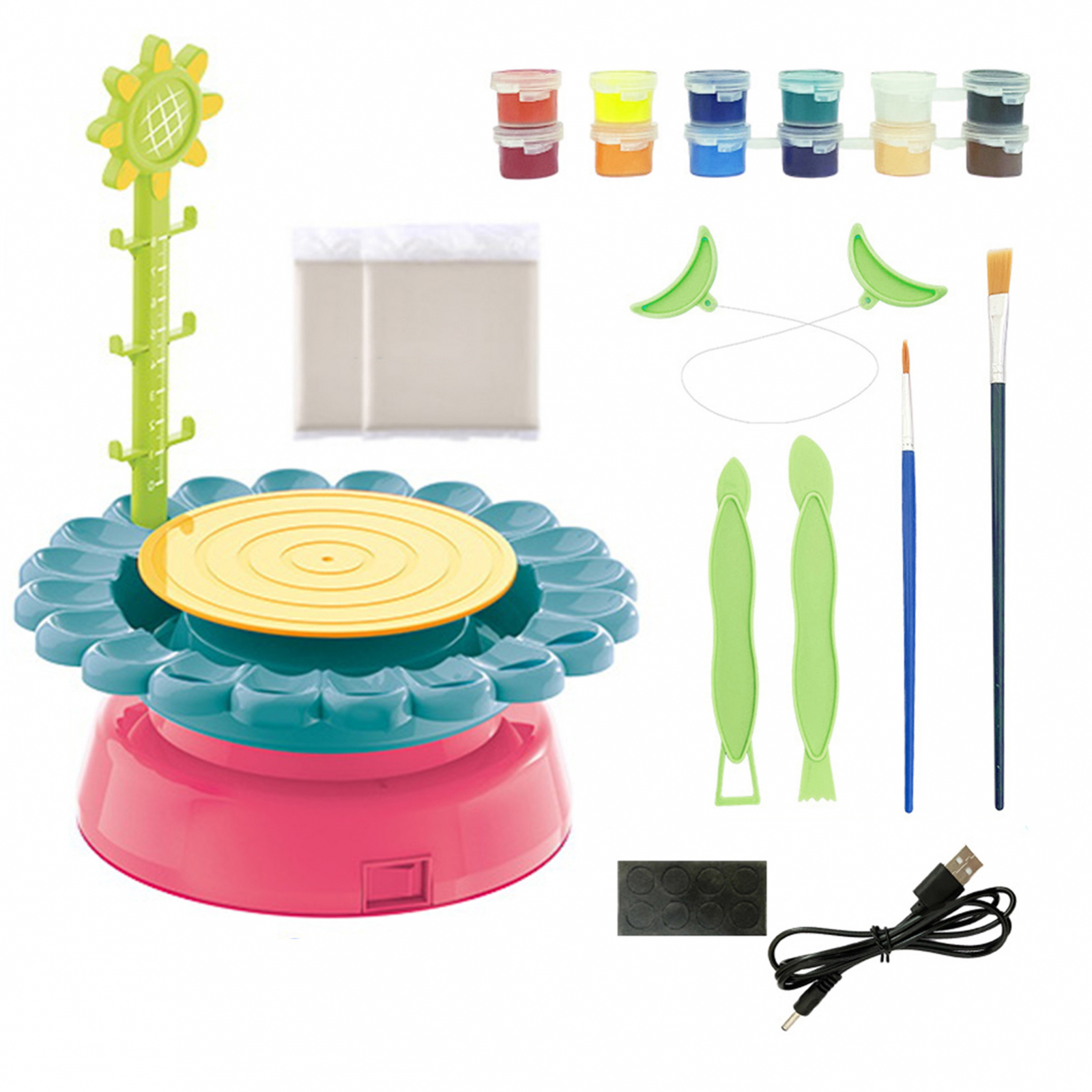 Flexibilitate în utilizare: Roata de olar poate fi alimentată fie prin cablu USB, fie cu 4 baterii (nu sunt incluse), permițându-vă să transferați distracția din interior în curte sau oriunde altundeva doriți.