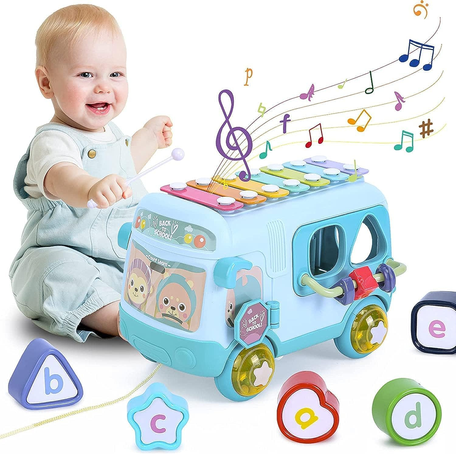🔧 Activitati incluse Autobuz Interactiv cu Xilofon si Sortator – Albastru :