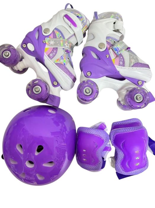 Ofera-i copilului tau bucuria miscarii cu Role Copii 4 Roti Tip Patine, Set Protectie – Model Stabil si Reglabil - Mov, special concepute pentru cei mici care vor sa invete sa patineze in siguranta si cu incredere. Cu un design stabil cu 4 roti, captuseala moale si sistem reglabil, aceste role pentru copii sunt ideale pentru incepatori si perfect adaptate nevoilor lor in crestere.