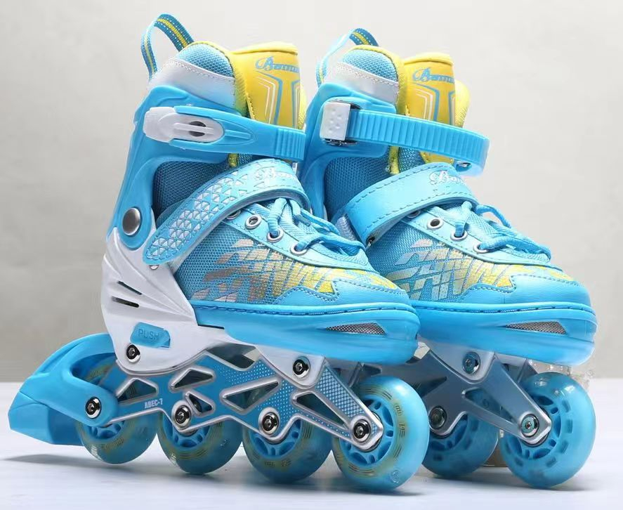 Alege Rolele reglabile pentru copii, roti cu lumini LED si set protectie, pentru a oferi copilului tău o experiență sigură și distractivă. Aceste role sunt perfecte pentru începători, oferind siguranță, confort și durabilitate, toate într-un pachet atractiv și ajustabil. Comandă acum și bucură-te de plimbări pline de lumină și bucurie!