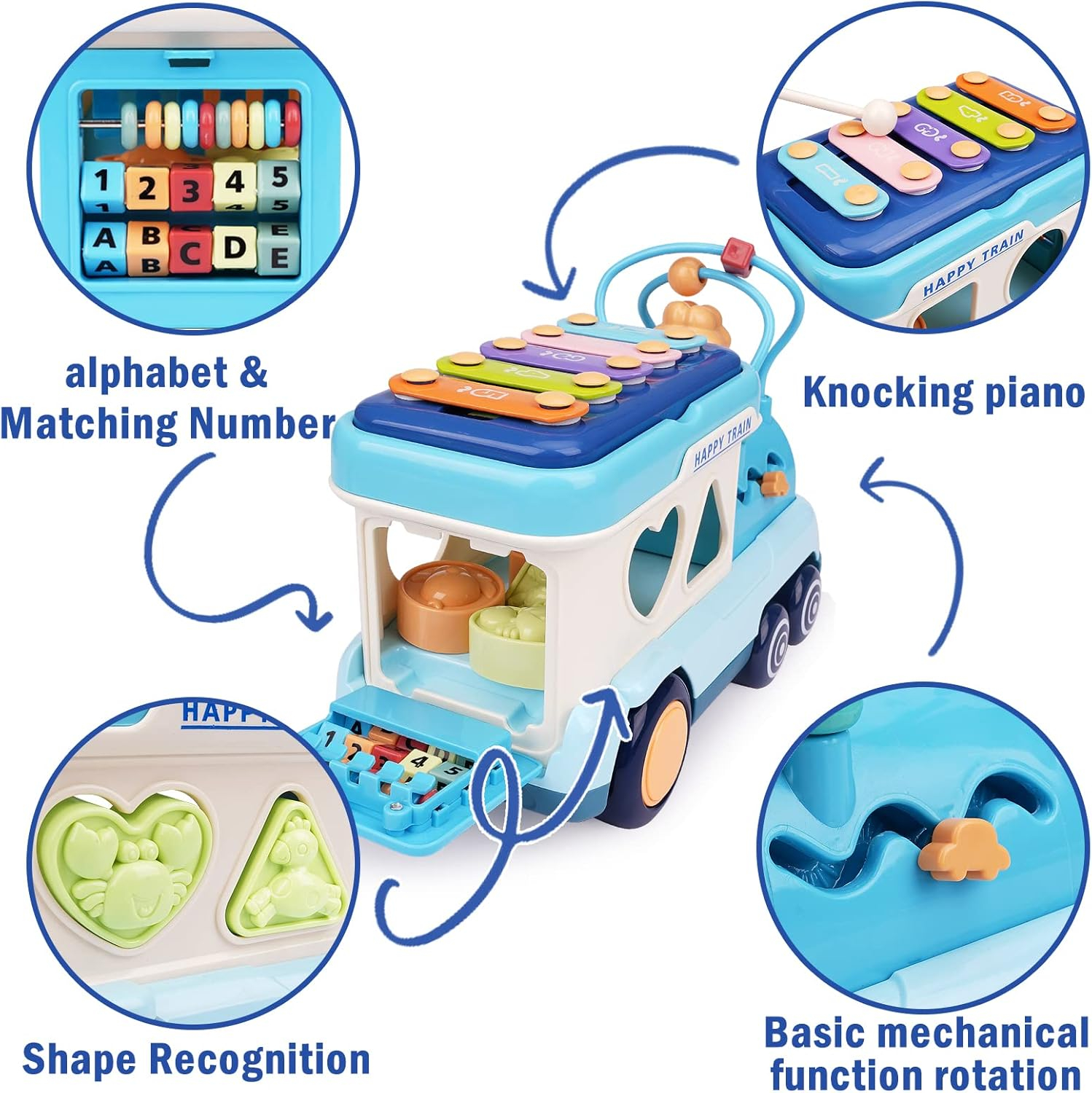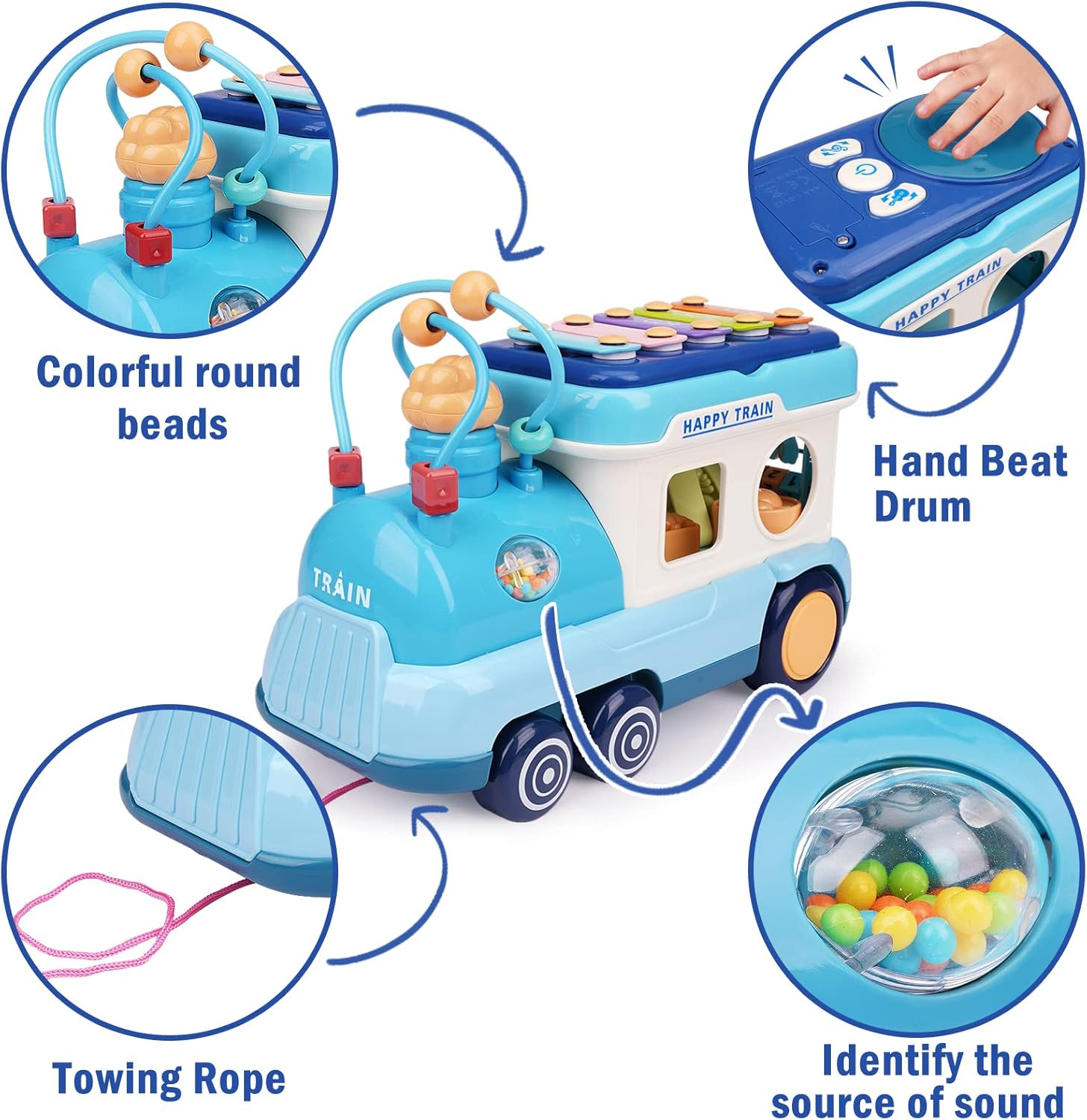 🔧 Caracteristici principale Jucarie Interactiva Locomotiva cu Activitati si Xilofon – Albastra