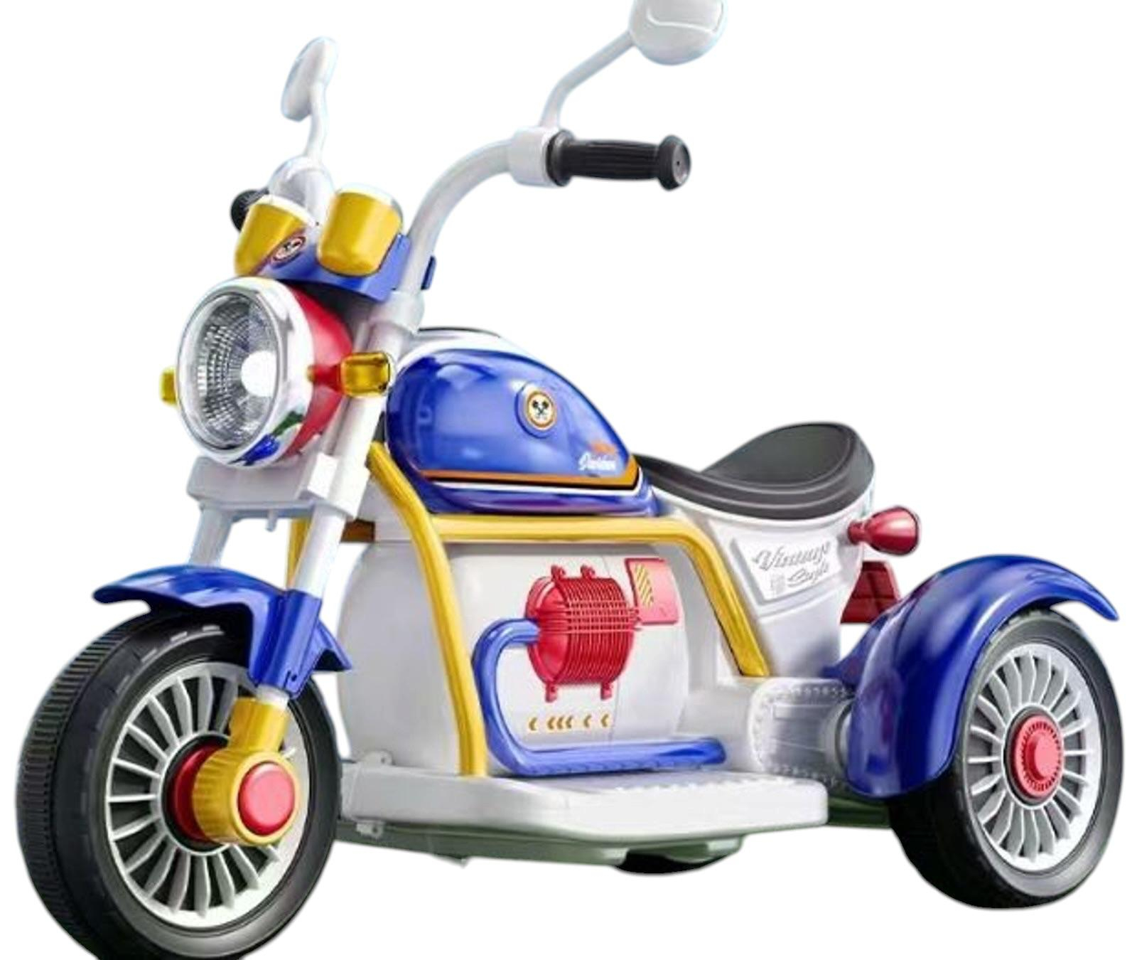 Ofera-i copilului tau o experienta reala de aventura cu aceasta motocicleta electrica pentru baieti 6V, creata pentru siguranta, distractie si dezvoltare. Modelul in combinatie alb cu albastru, cu 3 roti stabile, lumini LED si functii muzicale transforma fiecare plimbare intr-o experienta captivanta.