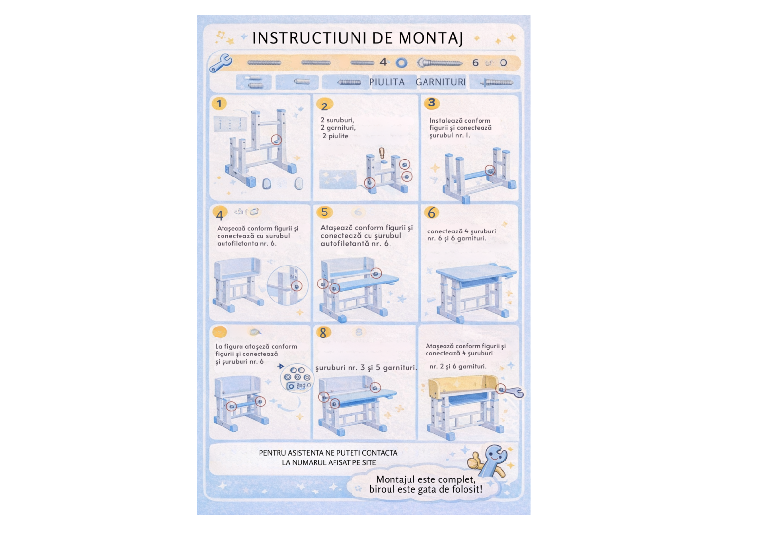 Literele Alfabetului: Biroul este decorat cu literele alfabetului, facilitand invatarea literelor si formarea cuvintelor.
