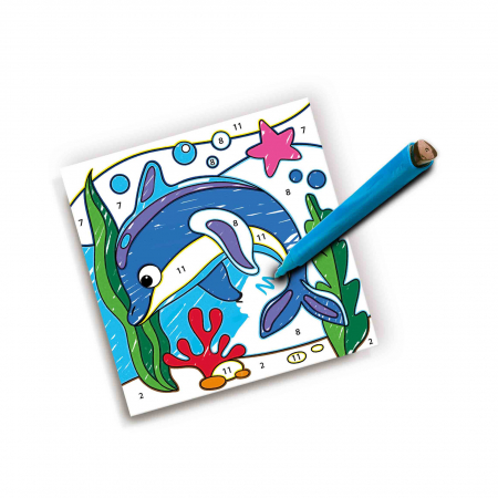 Contine: 6 pagini mari de colorat dupa numere; markere: portocaliu; galben; verde deschis; verde inchis; albastru deschis; albastru inchis; roz; violet; violet inchis; rosu; maro; negru.