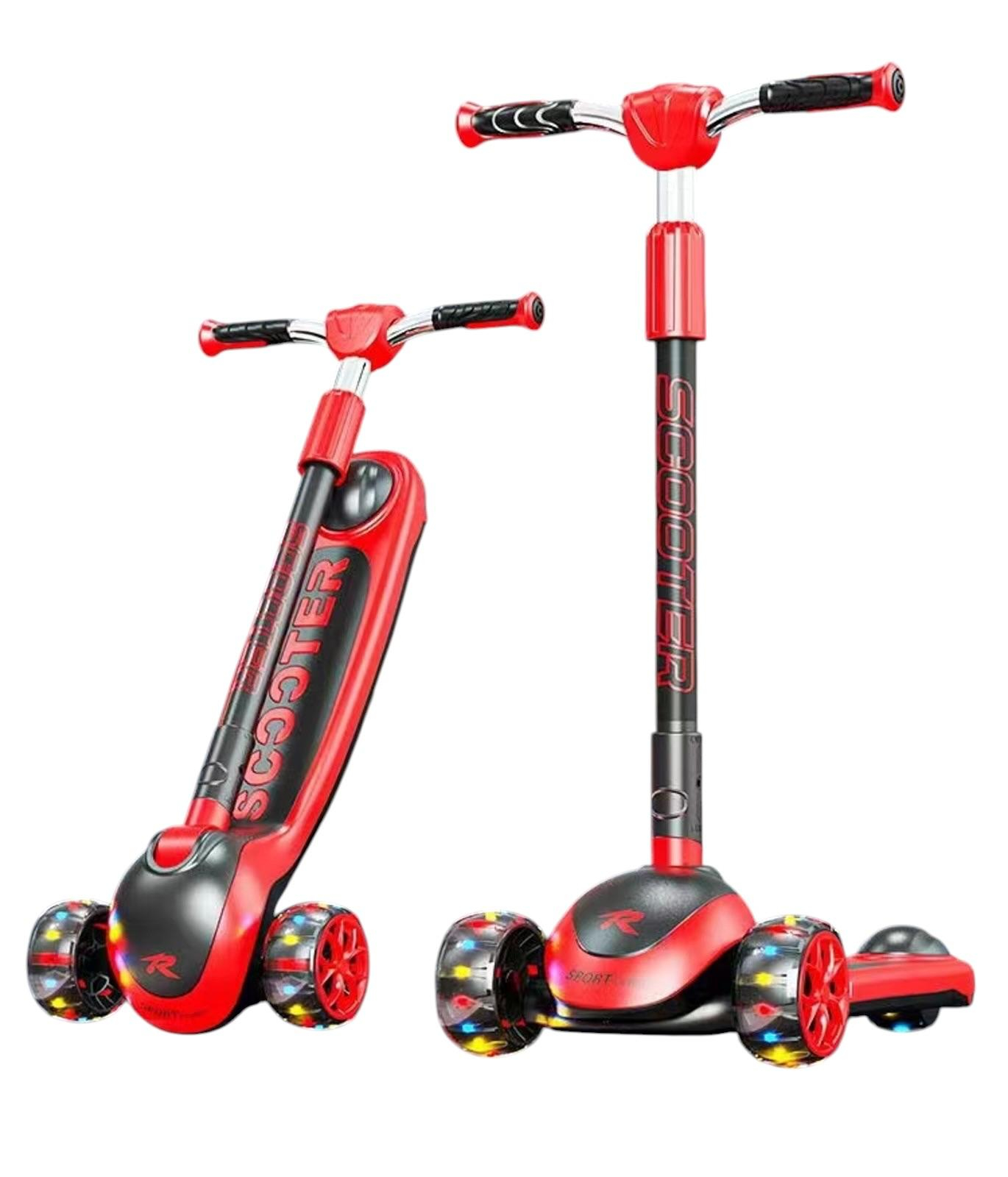 Aceasta trotineta pliabila rosie cu roti luminoase este cadoul ideal pentru: